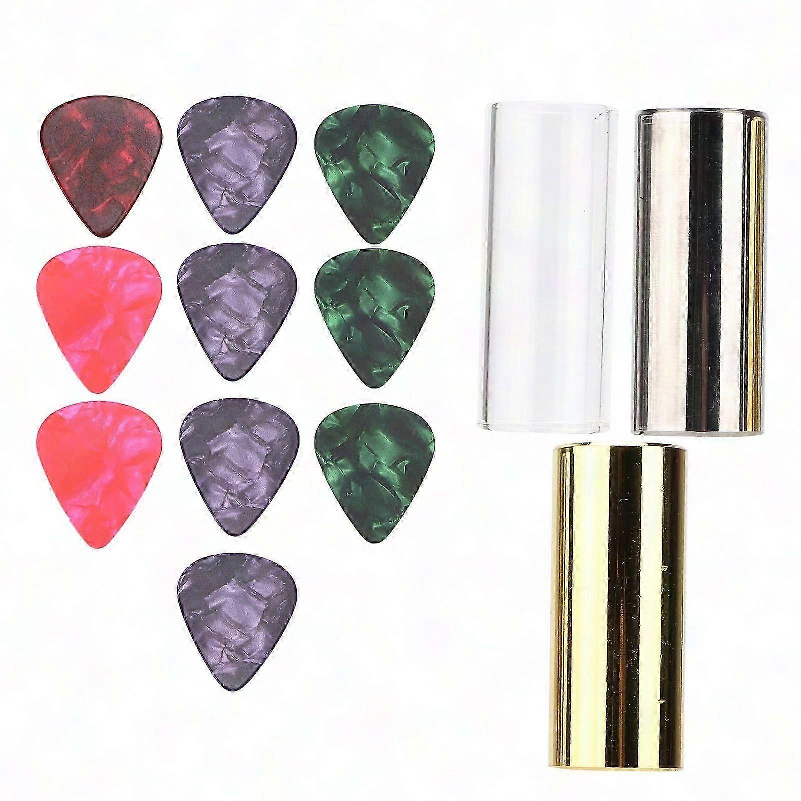 3Pcs Guitar Slide Bar Glass Metal Cylindrical Slider Celluloid Picks Playing Accessories