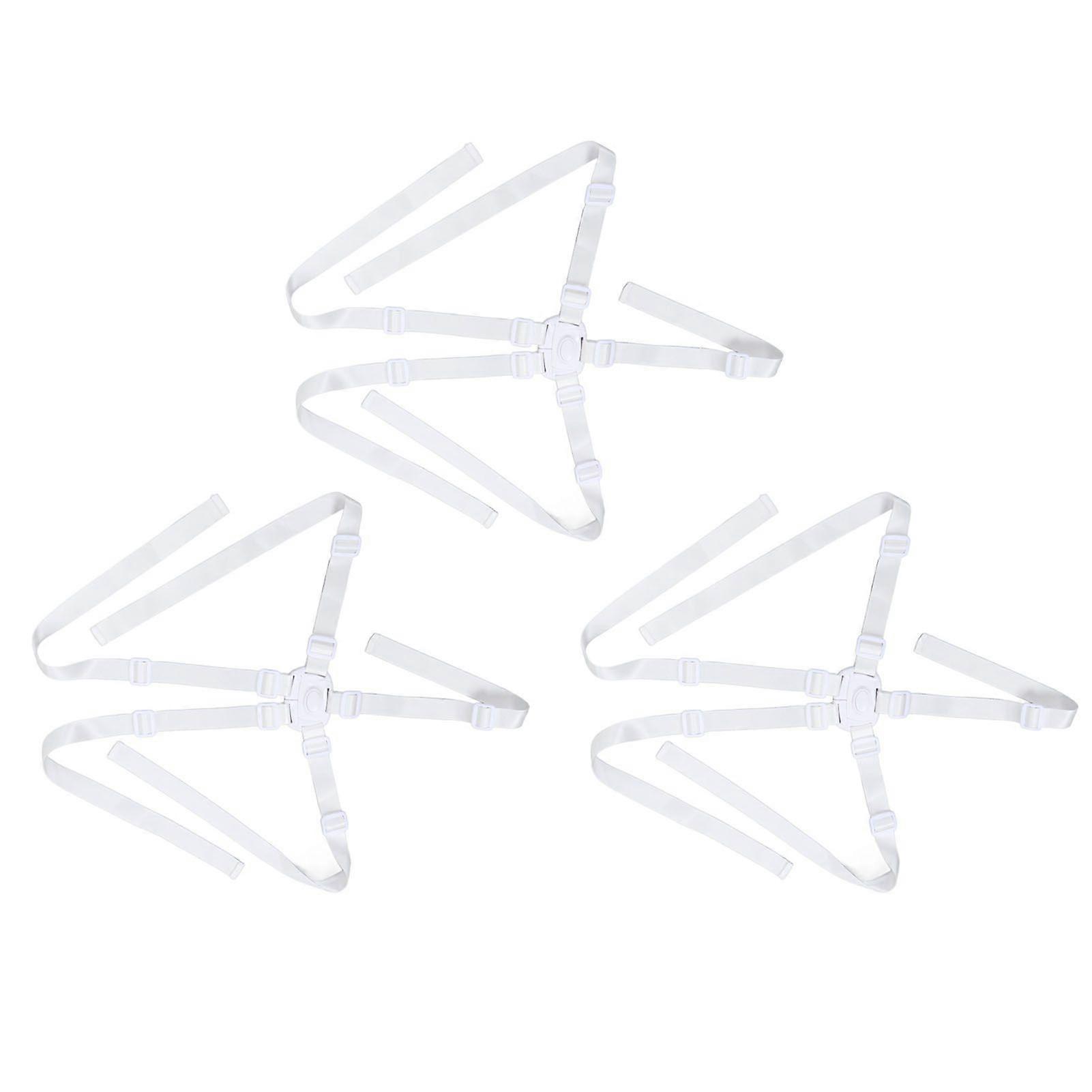 3 Set 5 Point High Chair Harness Replacement Adjustable Child Proof Buckle Dining Chair Straps for Baby Toddlers White