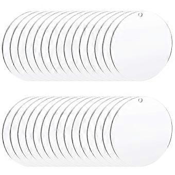 30 x 3 Inch Clear Acrylic Key Ring Blanks with Hole, Round Acrylic Ornaments for DIY, Engraving and Crafts
