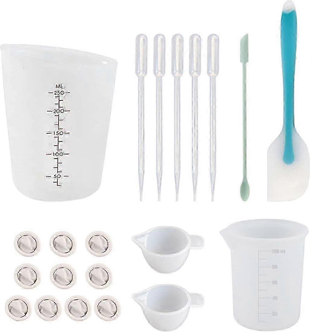 32pcs Silicone Resin Measuring Cups Tool Kit,250 & 100 Ml Measure Cups, Finger Cots, Droppers, Silicone Spatula,transfer Pipettes For Epoxy Resin