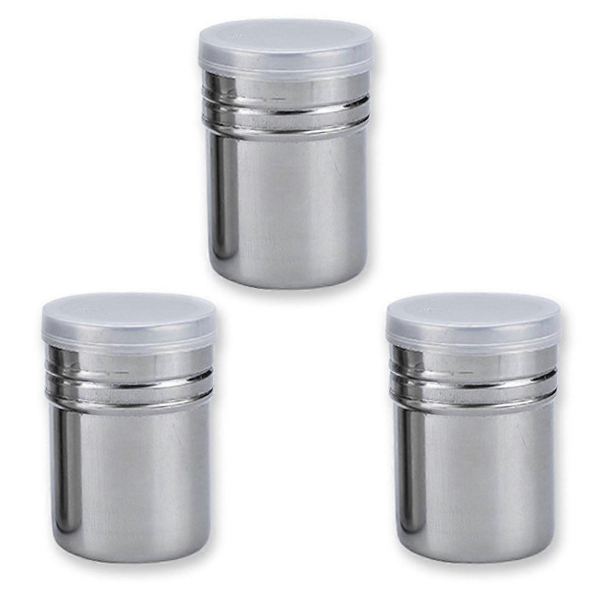 3pcs Powder Sugar Shaker Duster, Stainless Steel Powder Sugar Shaker with Lid, Sifter Dredge Shaker(silvery)