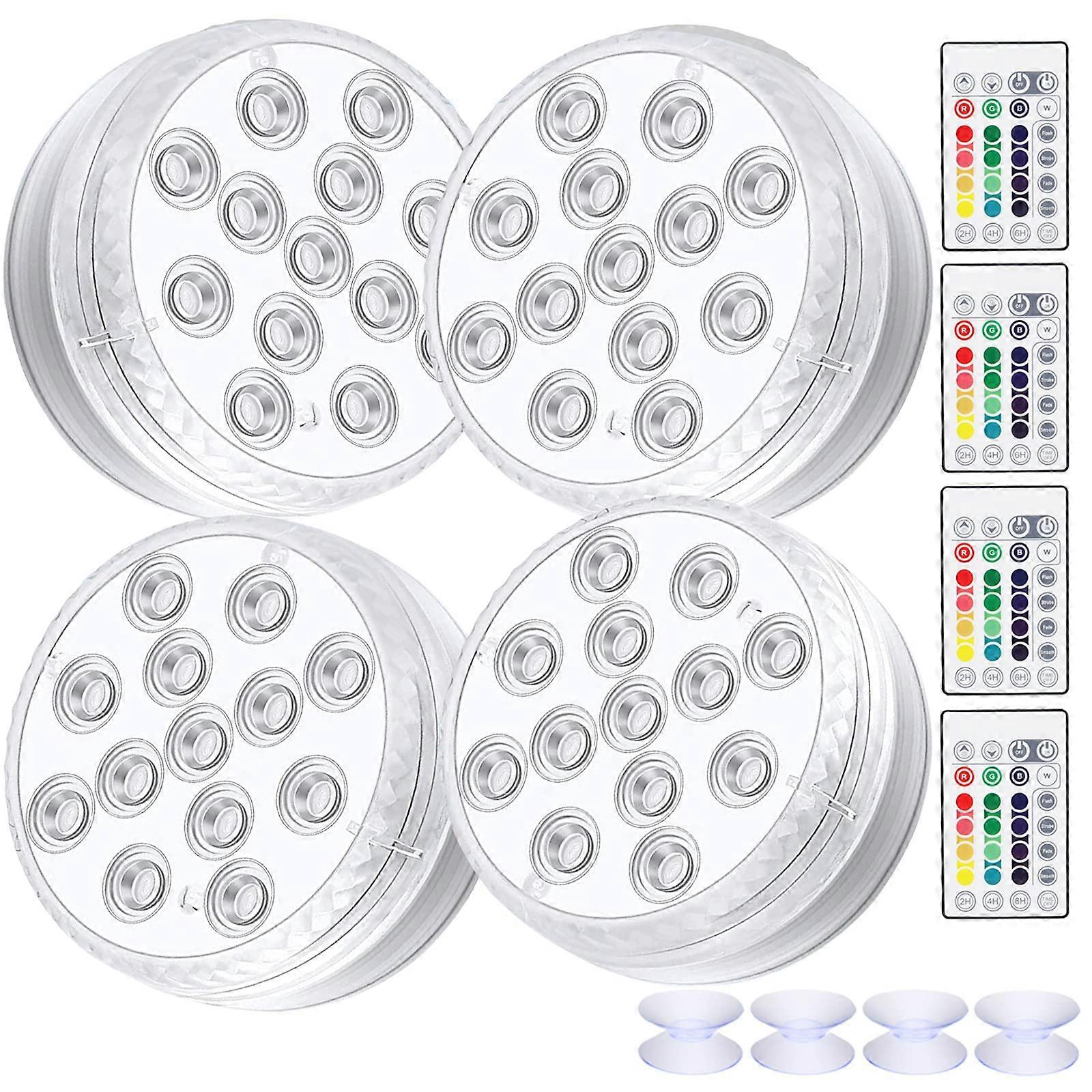 4 Pack Waterproof LED Lights with Remote Control RGB Color Changing Pond Lighting Decoration