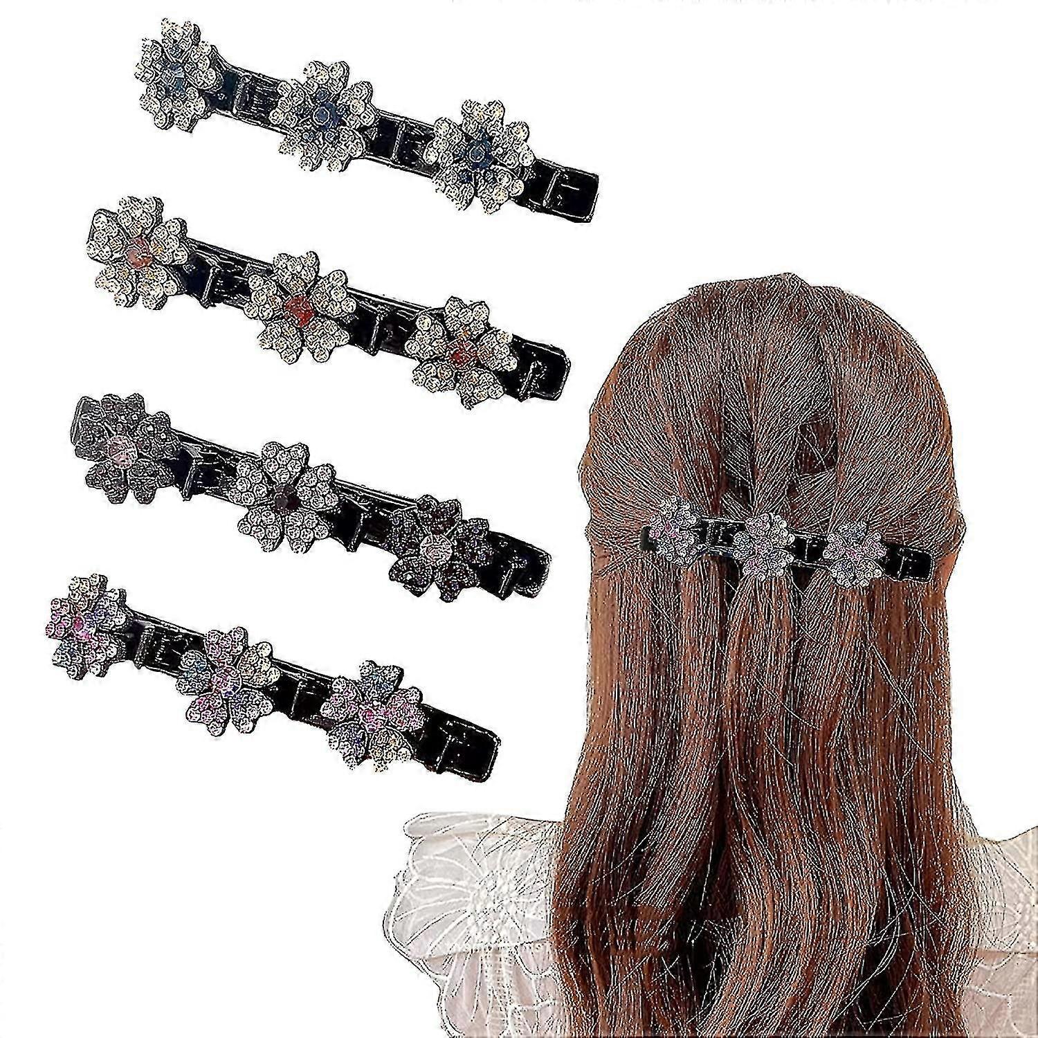 4 Pcs Sparkling Braided Clips For Women,rsvelte Braided Clip With 3 Small Clips
