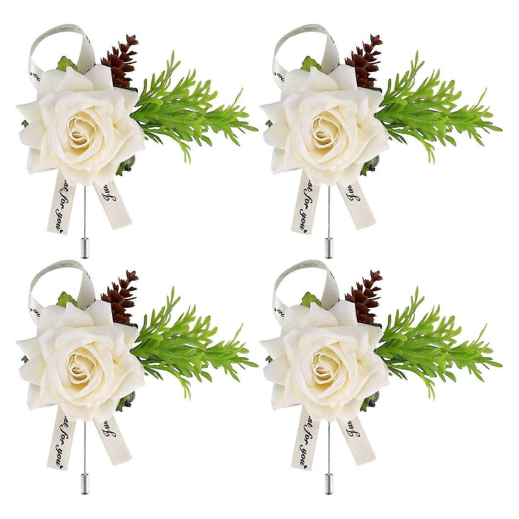 4 Pcs Wedding Boutonnieres Corsage Buttonhole Flowers with Pin&Clip for Groom Bride Suit Dress Deco