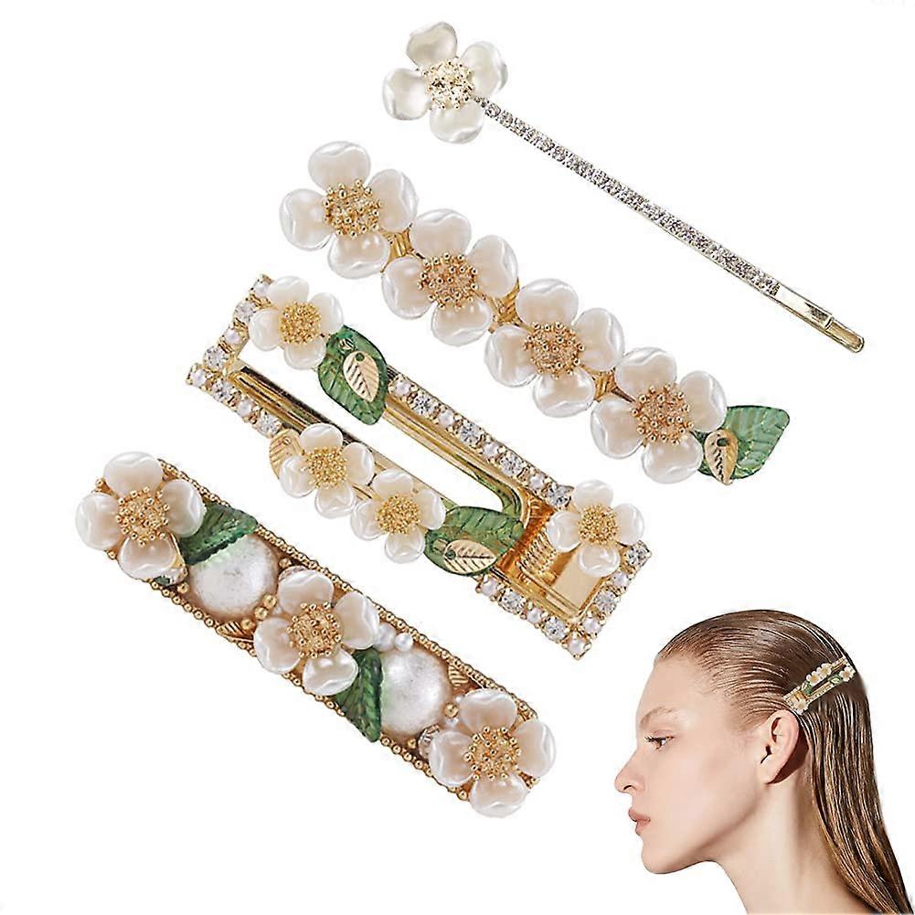 4 PCS Metal Flower Hair Clips Pearl Hair Barrettes Hairpins Hair Accessories for Women Girls