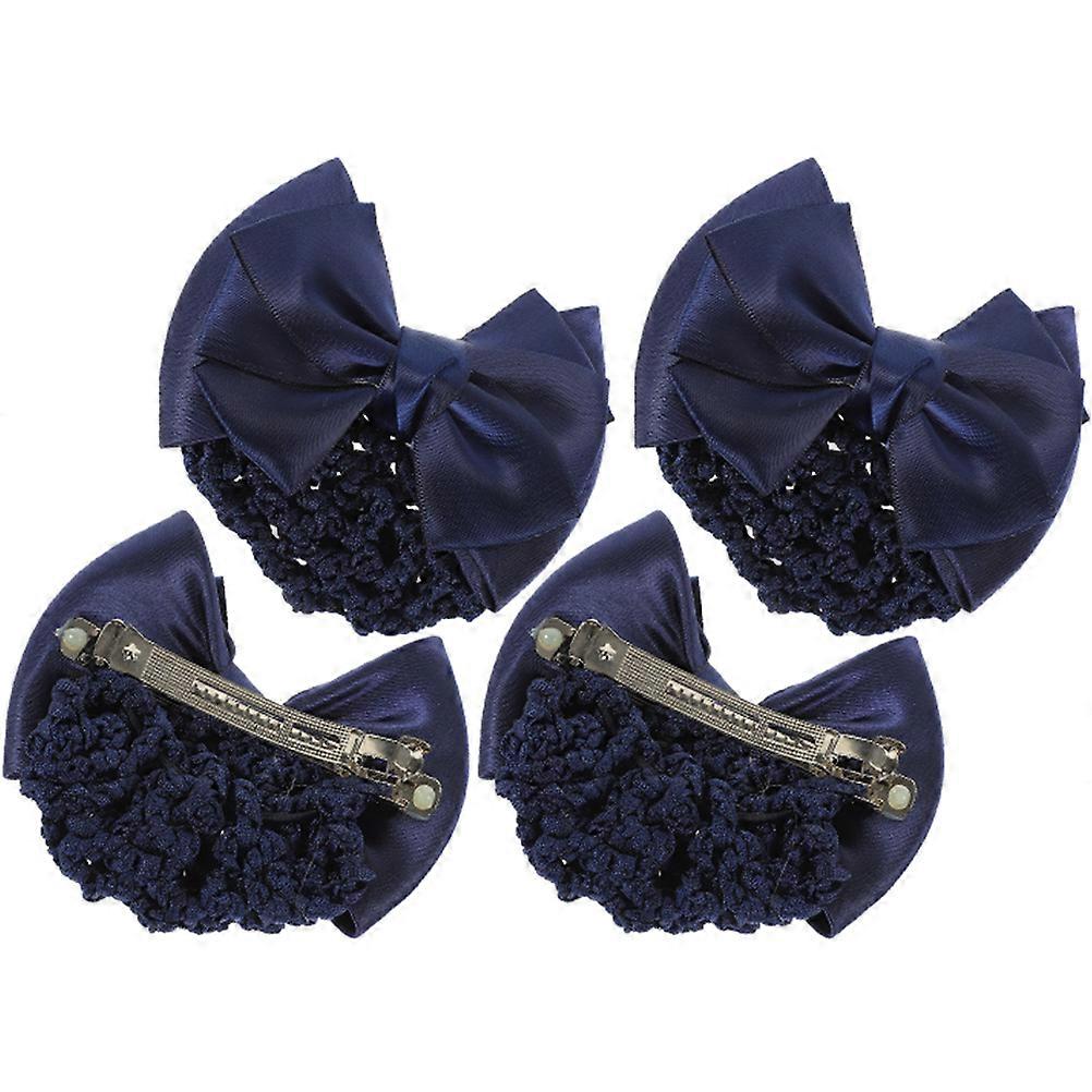 4Pcs Blue Bow Bun Hair Net Clip for Women Hairnet Decoration Hair Clip