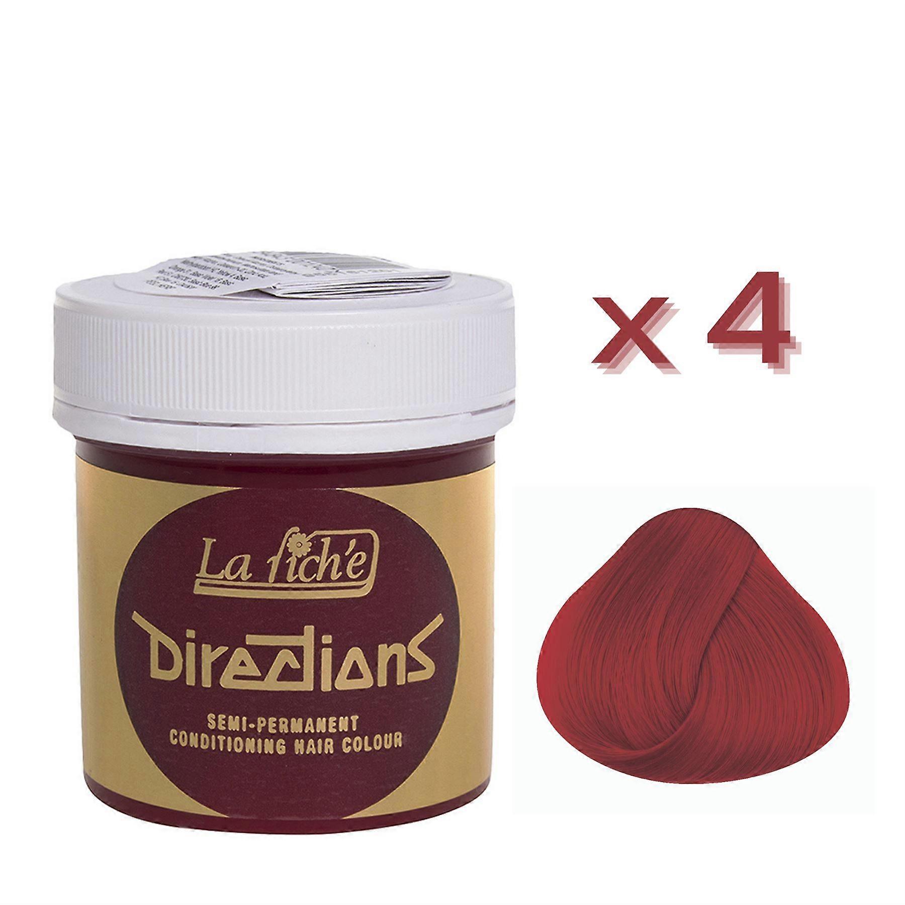 4 X La Riche Directions Semi-Permanent Hair Color 88ml Tubs - Vermillion Red