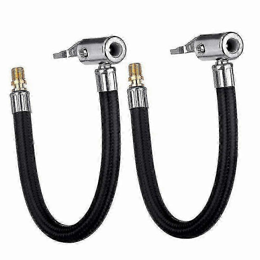 40cm Auto Car Air Tyre Tire Chuck Inflator Pump Hose Adapter Valve Pipe Tool (black+silver)(2pcs)