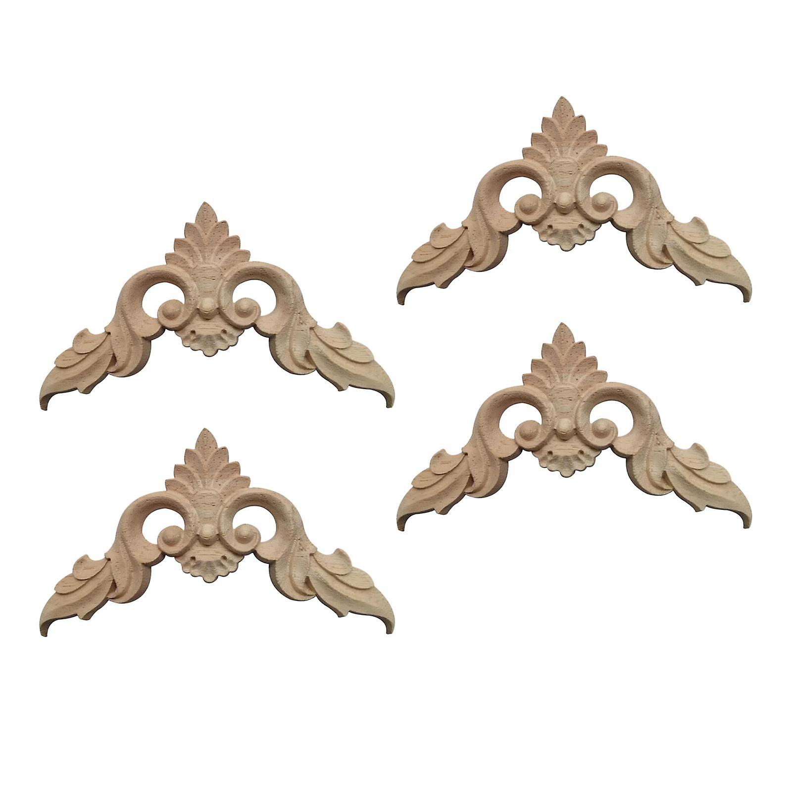 4x Wood Applique Corner Onlay Mouldings Craft for Mirror Furniture Decor 8cmx8cmx0.8cm