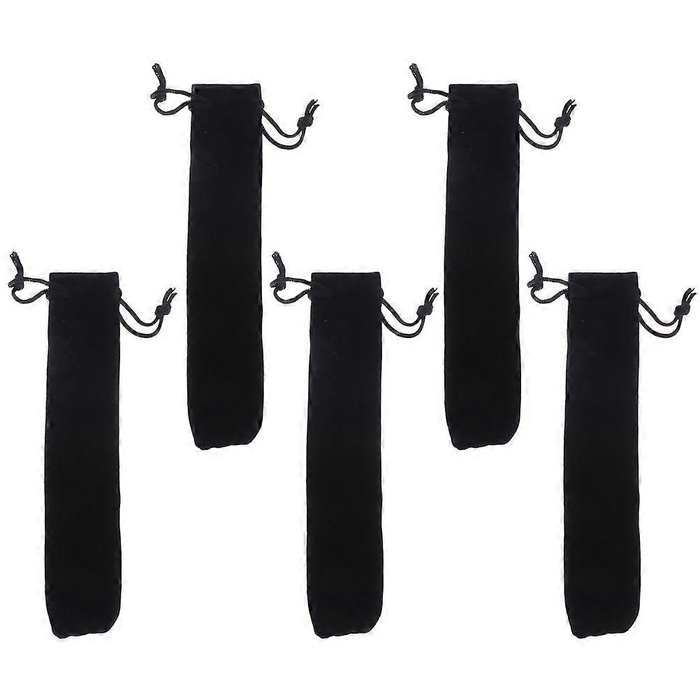 5Pcs Single Pen Pouch Sleeve Flannelette Single Pen Gift Bag Drawstring Pencil Bag (Black)