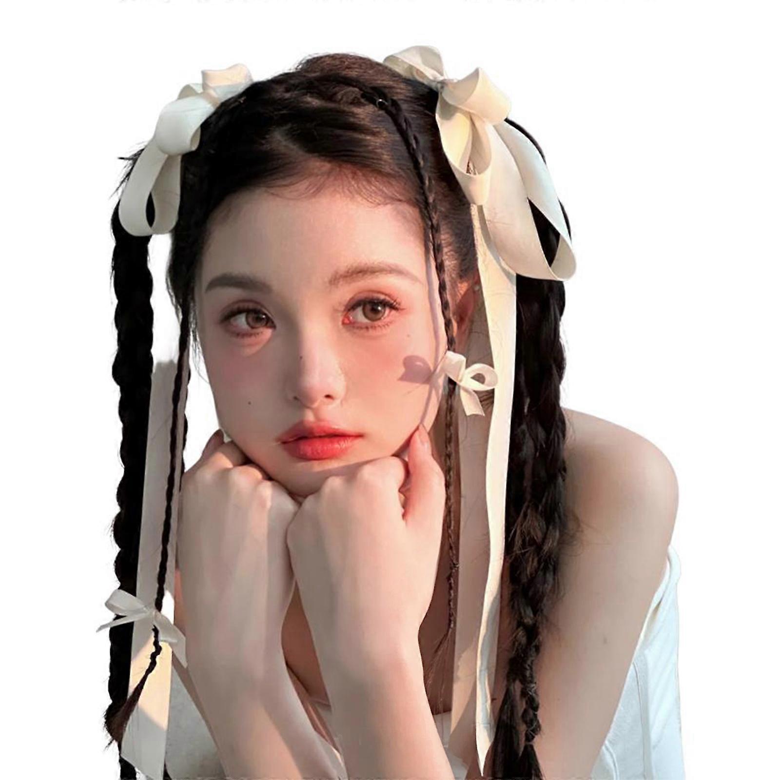 5pcs Braids Hair Clip for Wedding Bride Ribbon Layered Bowknot Hair Barrettes Ponytail Hair Barrettes for Teens Girl White