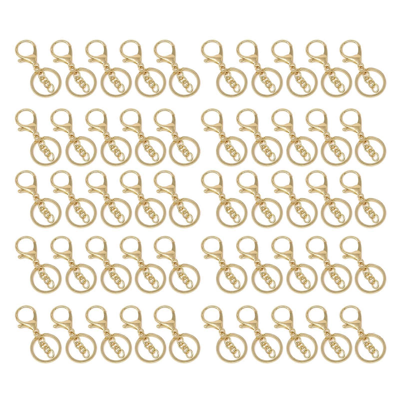 50PCS Key Chain Ring Alloy Golden Polished DIY Handcraft Metal Key Rings with Chain for Travel