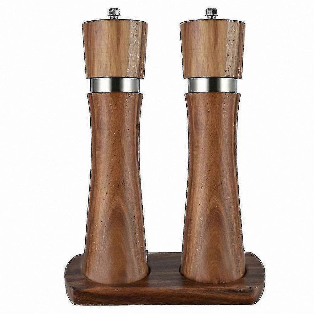 6-Inch Wooden Salt and Pepper Mill Set with Stand for Manual Grinding