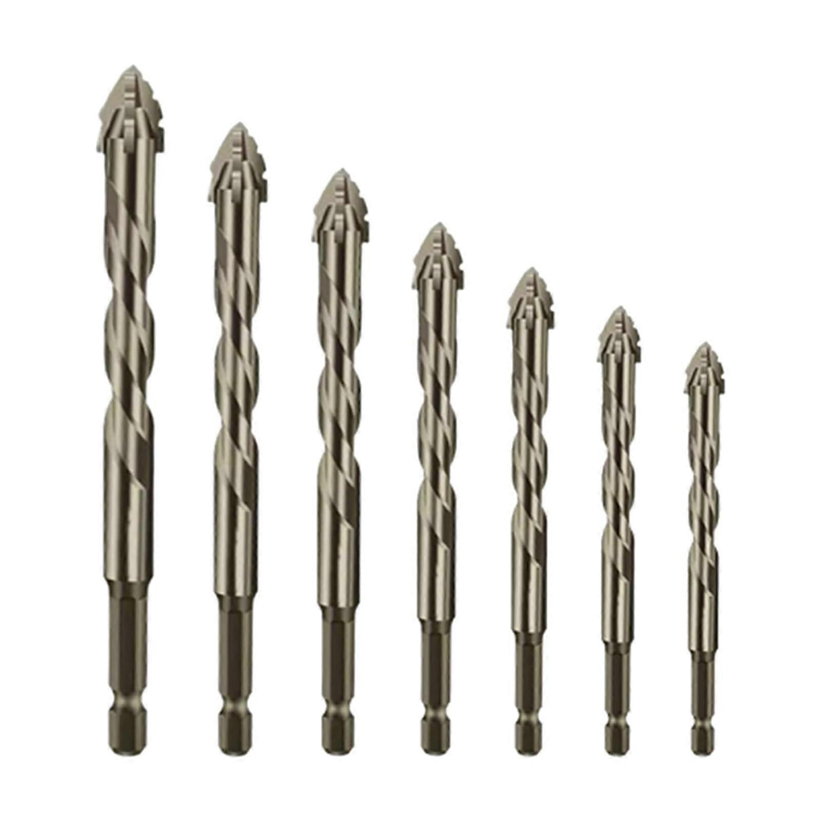 7PCS Eccentric Drill Bit, Four-Edge Serrated Concrete Drill Bit, 3/4/5/6/8/10/12mm Tungsten Carbide Masonry Drill Bit Set