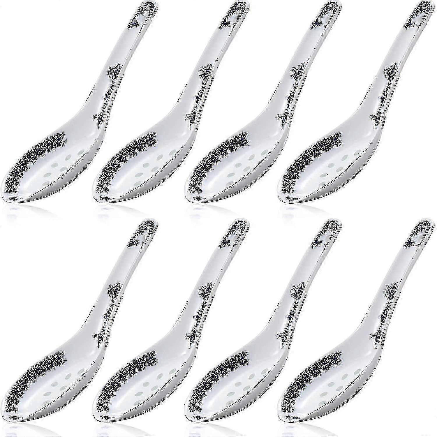 8-Piece Ceramic Soup Spoons Set with Nordic Porcelain Pattern, Flatware for Dining & Serving