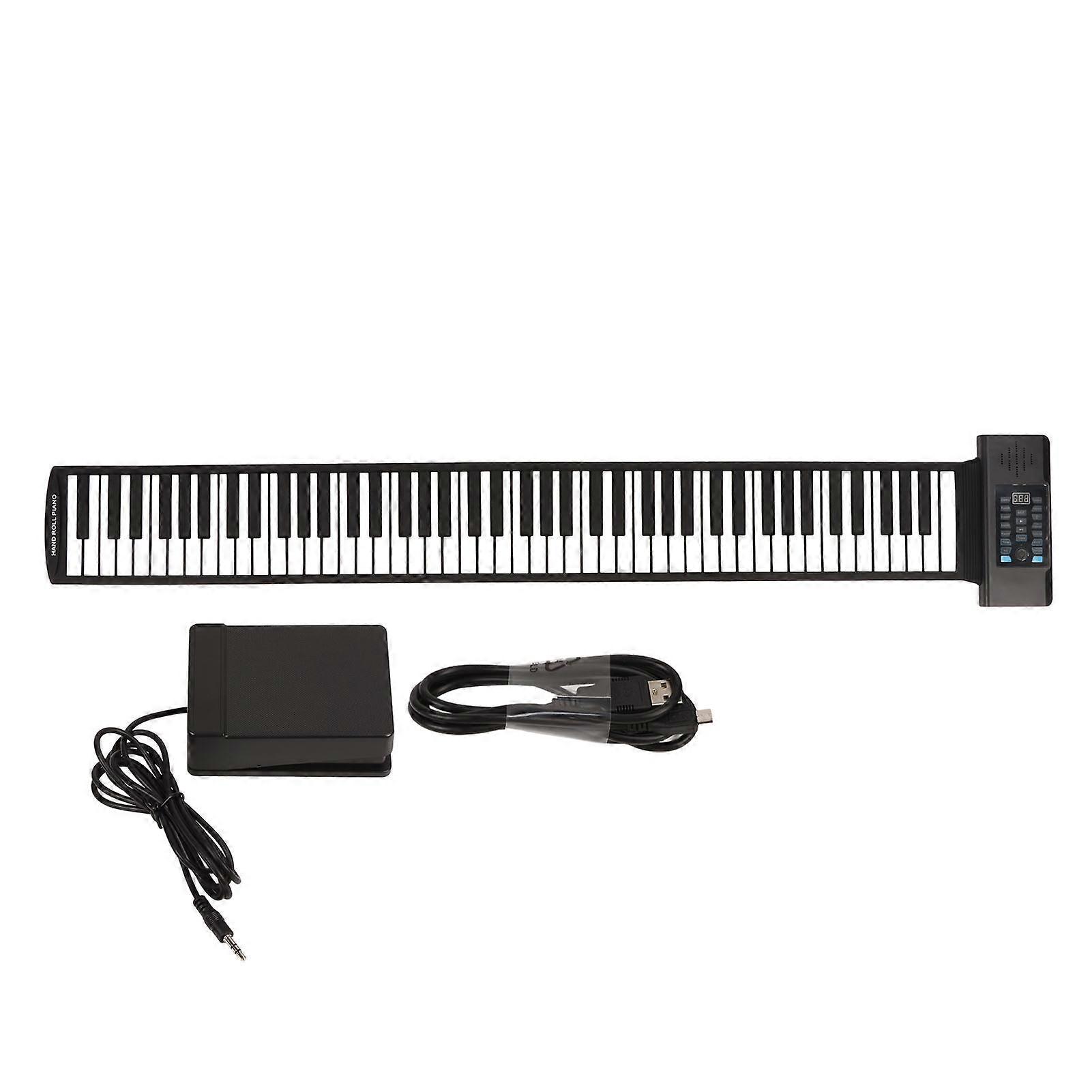 Experience the joy of music anytime, anywhere with this versatile Portable Roll Up Piano, designed for all ages and skill levels. Featuring a full 88-key standard piano layout (A1‑C9), this digital piano combines portability and advanced functionality, making it an ideal choice for beginners, hobbyists, and musicians on the go. Equipped with Bluetooth MIDI connectivity, it easily pairs with compatible apps for enhanced learning and creative possibilities. Key Features: · Universal and Portable Design: Compact and lightweight roll-up piano with 88 standard piano keys, perfect for travel, practice, or casual play. · Extensive Sound Options: Offers 128 tones and 128 rhythms accompanied by 14 built-in demo songs, allowing you to explore a wide range of musical styles. · Multifunctional Capabilities: Includes recording, editing, playback, sustain, vibrato, teaching modes, and chord functions, providing a comprehensive musical experience. · User-Friendly Interface: Features an LED digital tube display for clear settings visibility, built-in speaker for independent play, and supports external sound output or headphones for private practice sessions. · Flexible Power Supply: Powered by a built-in 1100mAh rechargeable lithium battery, external DC 5V USB power supply, or mobile charging devices for continuous play wherever you are. · MIDI Output Support: Connect seamlessly to computers or tablets via MIDI for enhanced music production, learning apps, and digital interfaces. Specifications: · Item Type: Roll Up Piano · Material: Natural Silicone, ABS · Color: Black · Output Power: 500mW · Power Supply: Built-in 1100mAh Lithium Battery, External USB Power Supply Package Includes: · 1 x Portable Roll Up Piano This Portable Roll Up Piano combines convenience, versatility, and quality sound performance, making it the perfect musical instrument for practice, learning, or entertainment. Its durable natural silicone and ABS construction ensures flexibility and longevity, while the comprehensive features foster creativity and musical growth in an easy-to-use format.