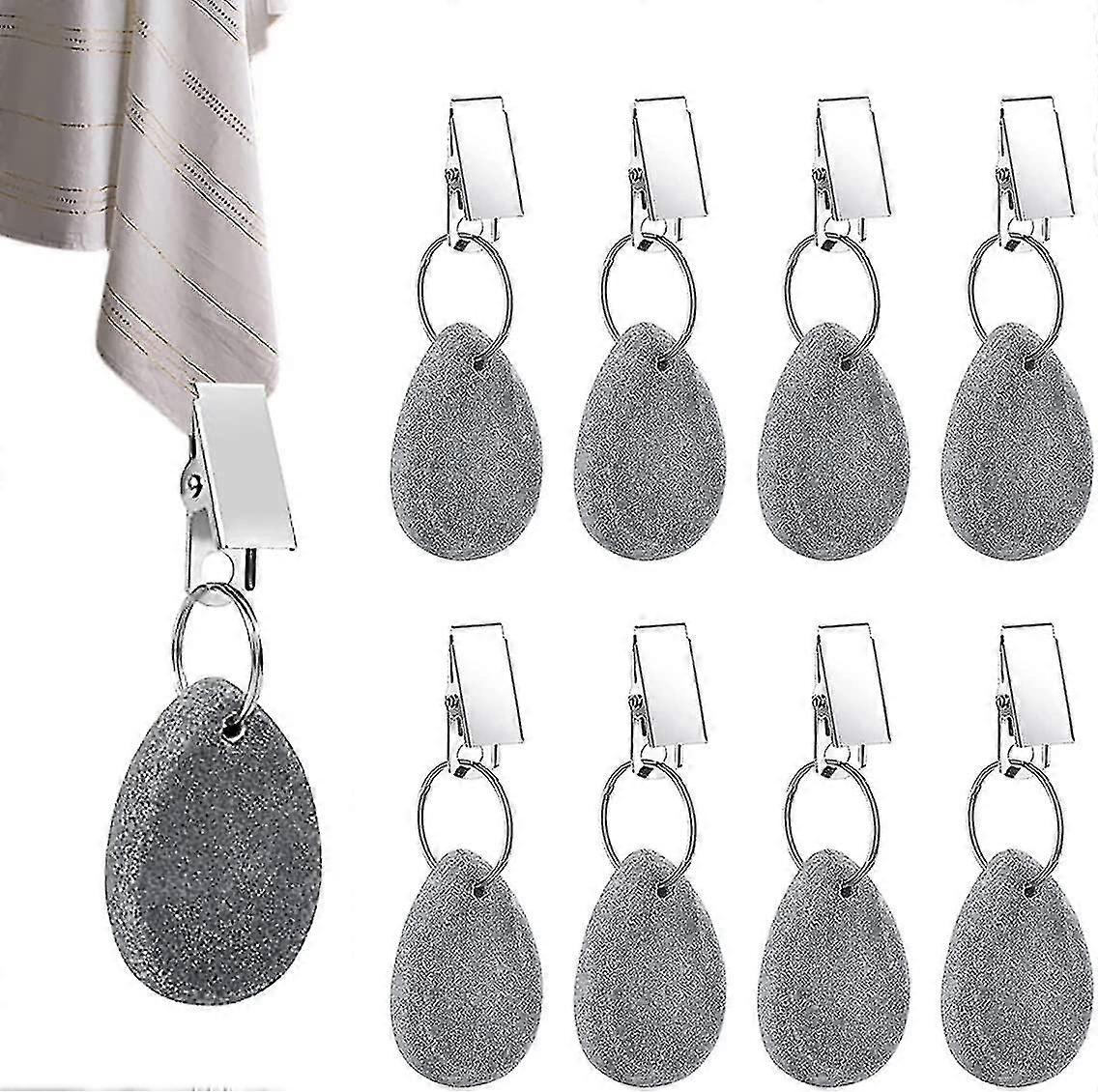 8pcs Tablecloth Weights Tablecloth Pendant Stone Table Cover Weights Hangers with Metal Clips (Drop-Grey)