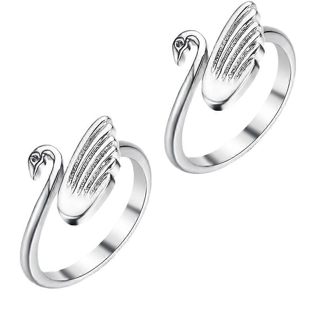 Adjustable Knitting Loop Ring Decorative Crafts Silver 2PCS