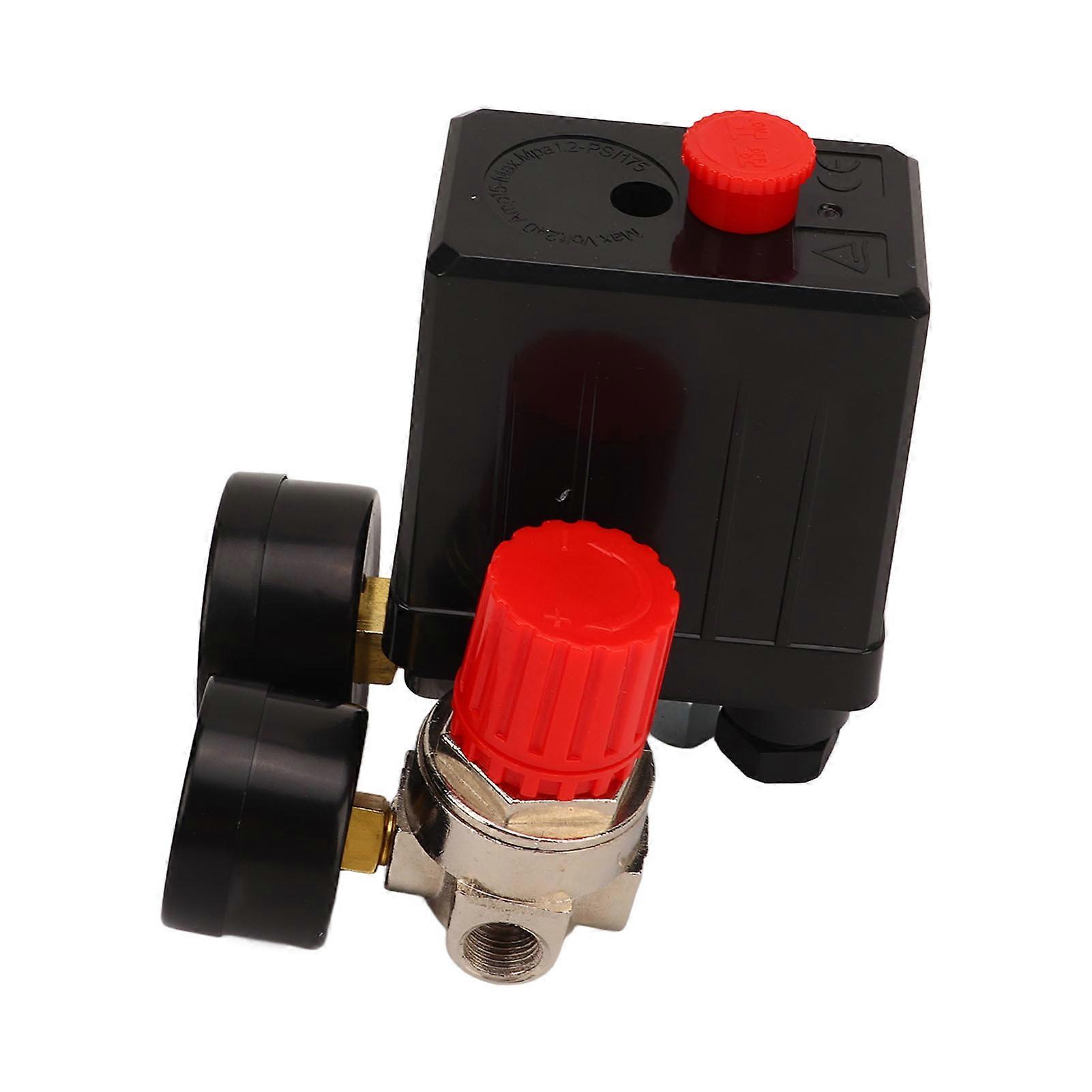 Air Compressor Pressure Switch 4-Way 0-180 PSI with Gauge