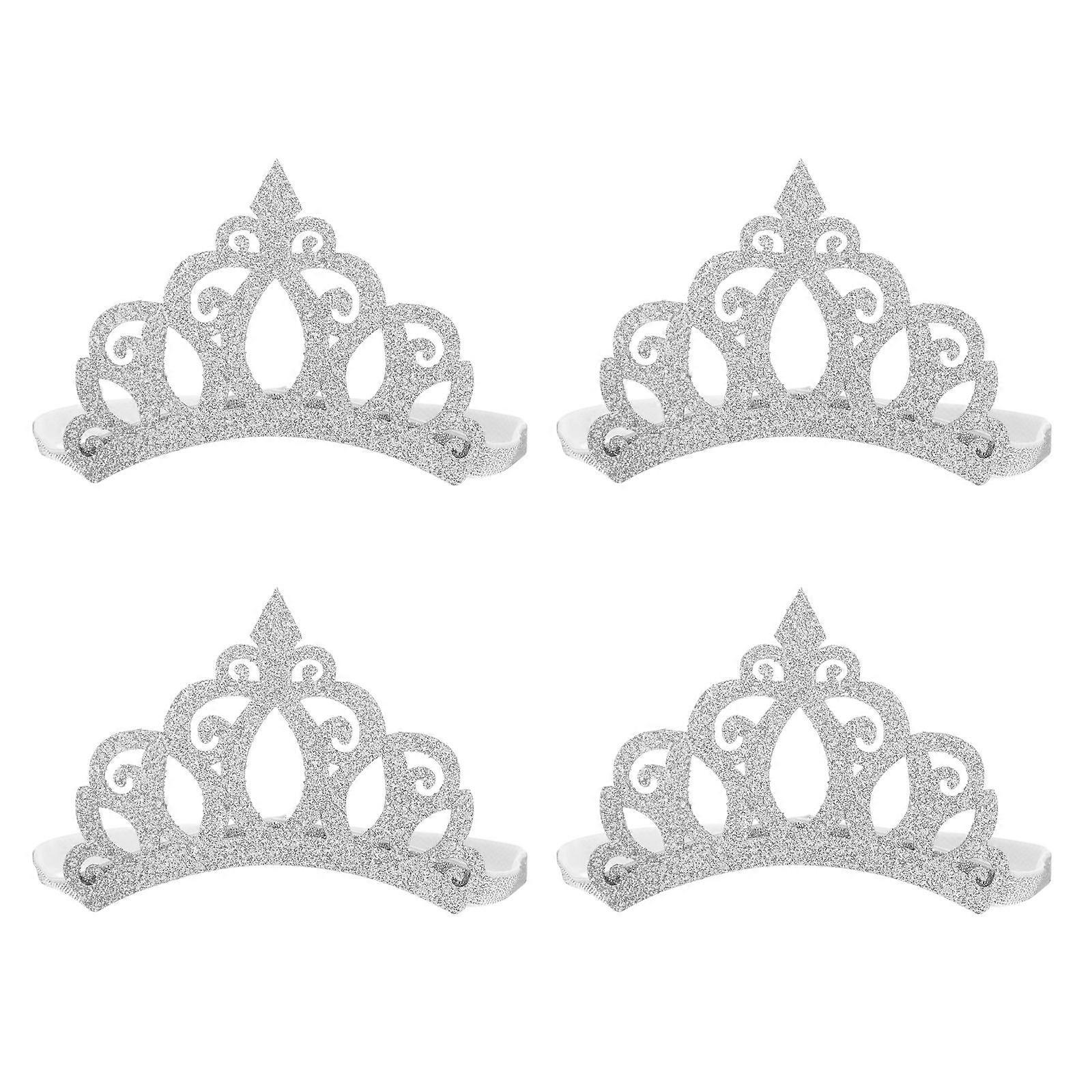 Toddler Hair Accessories Crown Headband Circular Shiny Appearance Girls Children Silver 12.5X12.5X6.3CM 4Pcs