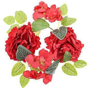 Artificial Flower Candle Ring Red for Decoration 3Pcs Table Centerpiece