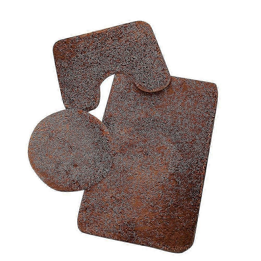 AURA Solid Color Velvet Pv Bath Mat 3 Pieces Set
