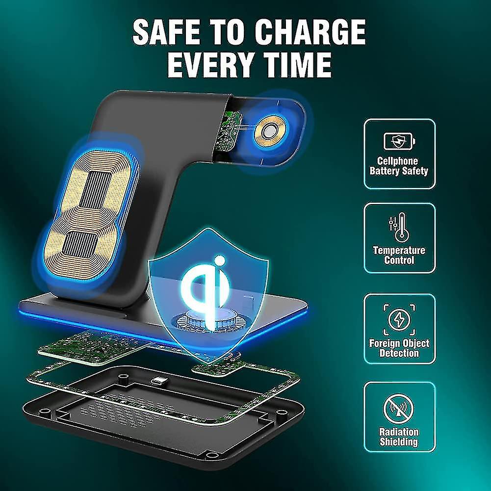 Wireless Charger, 15w Charging Station 3 In 1 Charging Dock Compatible With Apple Iphone S