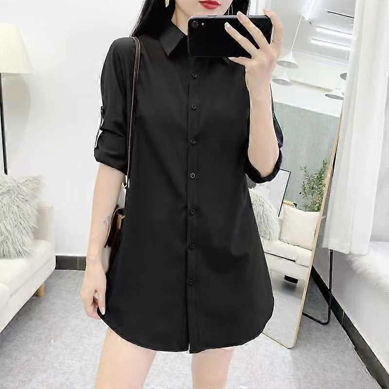 White Shirt Women's Long Striped Long Sleeve Loose All-Matching Graceful Commuter Bf Shirt Plus Size Navy Blue Wine Red