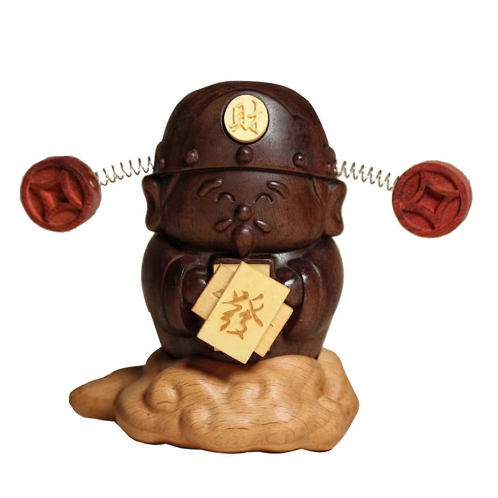 God of Wealth Figurine Wood God of Wealth Sculpture for Office Entrance Home