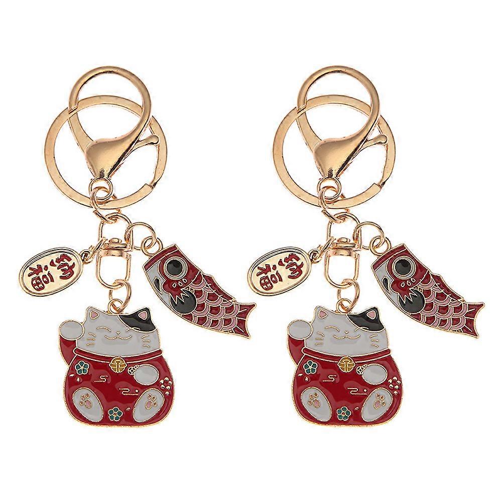 Fortune Cat Keychain Zinc Alloy Red Color for Long Term Use Multi Purpose Decor 2pcs