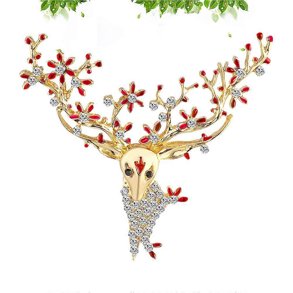 Christmas Brooch Elk Alloy Brooch Pin for Women 2Pcs Festive Rhinestone Badge
