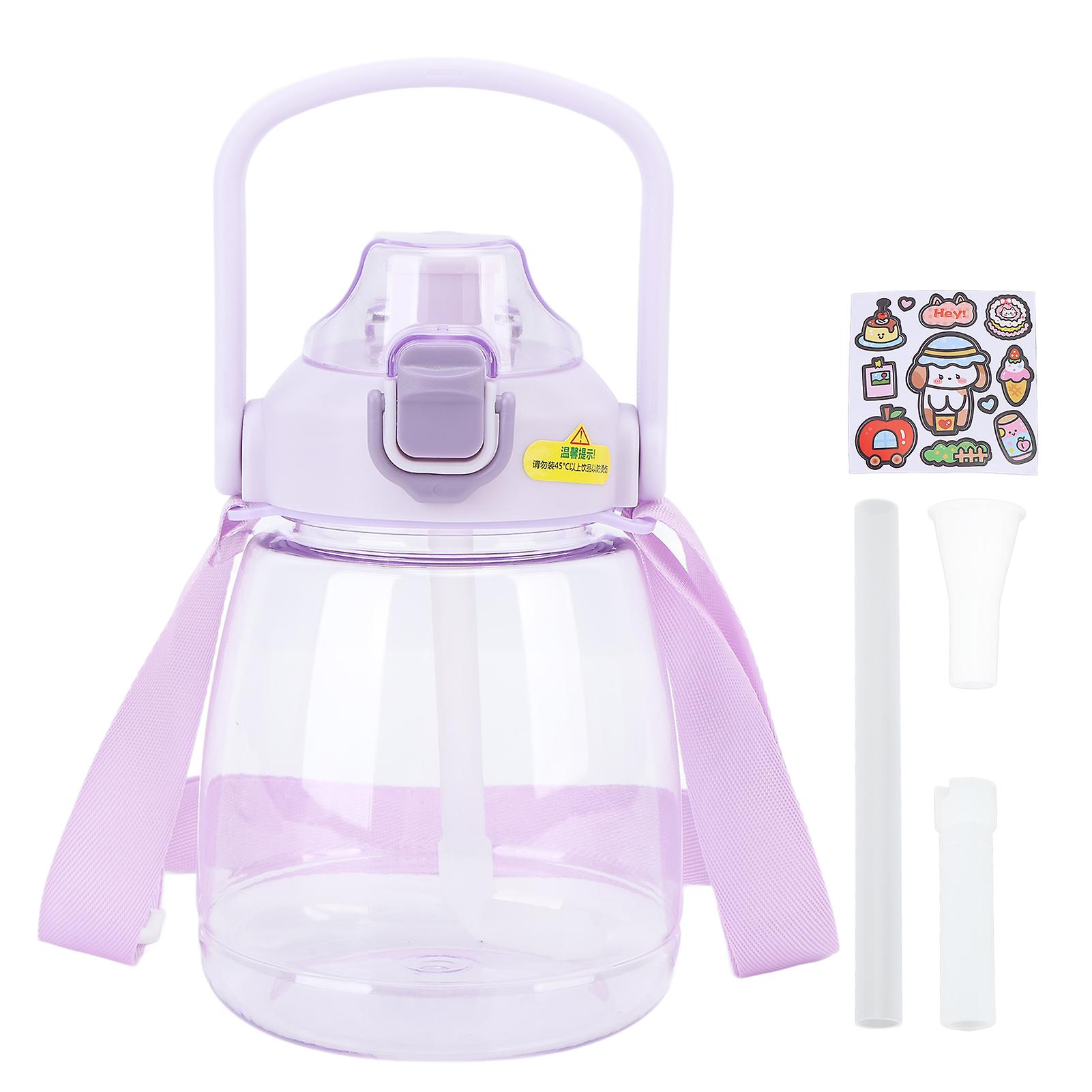 1100ml Water Bottle with Straw Plastic Water Jug with Strap Leakproof Spill Proof Big Belly Water Bottles for Kids Women Purple