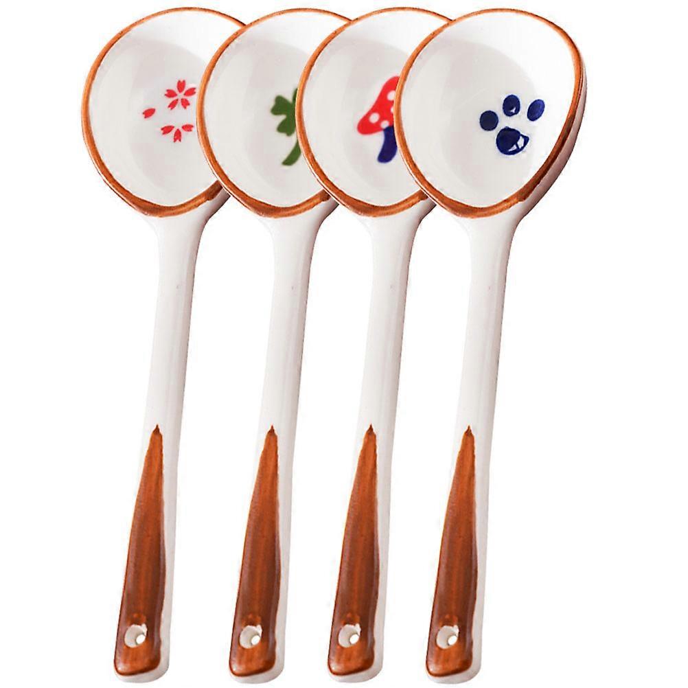 Ceramic Spoon Set For Picnic And Restaurant Use Long Handle Assorted Color 4Pcs