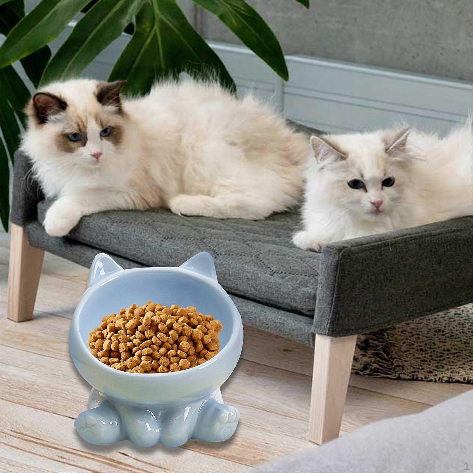 Ceramic Cat Feeder Bowl Dish Food and Water Raised Kitten for Dry Wet