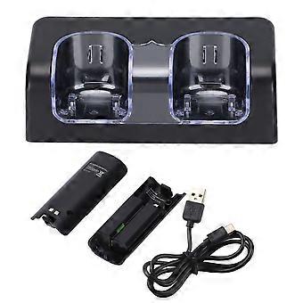 Chargeur de batterie à distance avec cordon d'alimentation, station de charge double portable stable pour télécommande de jeu Wii, noir