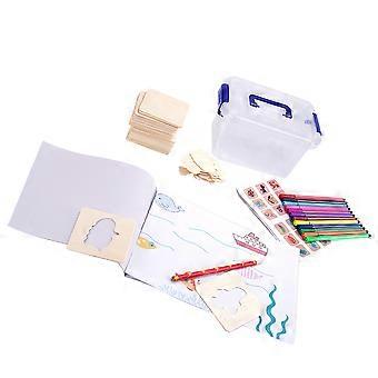 Children Paint Set 2 Sets Premium Wood Material Tools for Students Imagination Development Featuring Rectangular Shape