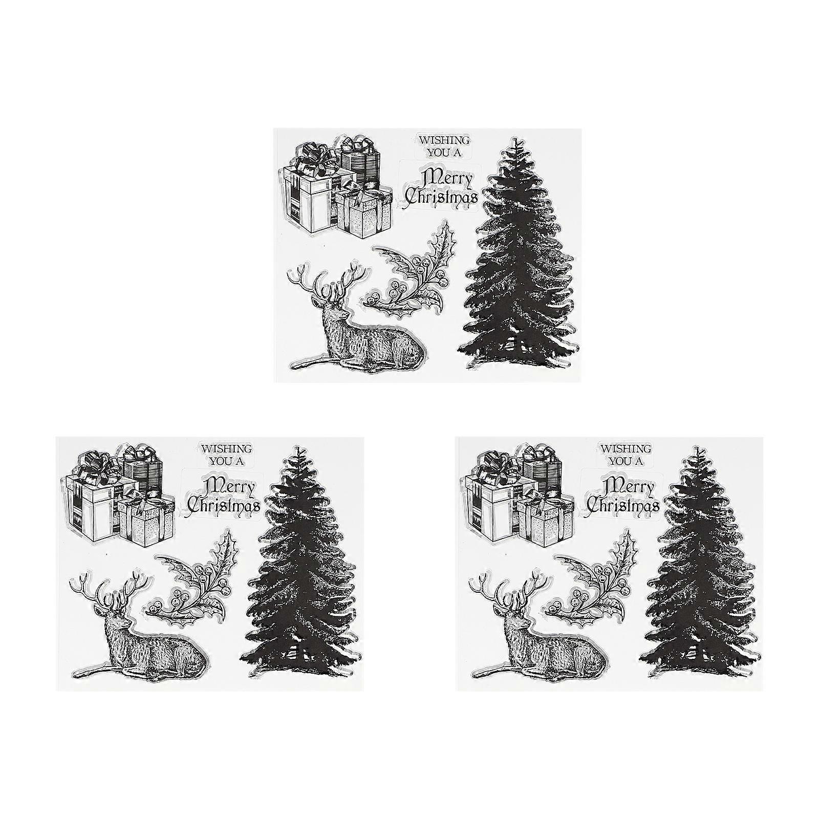 Christmas Tree Deer Stamp Transparent Stamper for DIY Craft 3Pcs