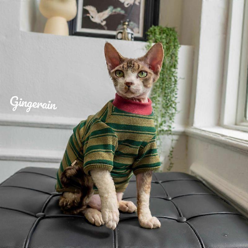 Cat Clothes Thin T-shirt For Devon Rex Ragdoll Sphynx Striped Crew Neck Basic Tee
