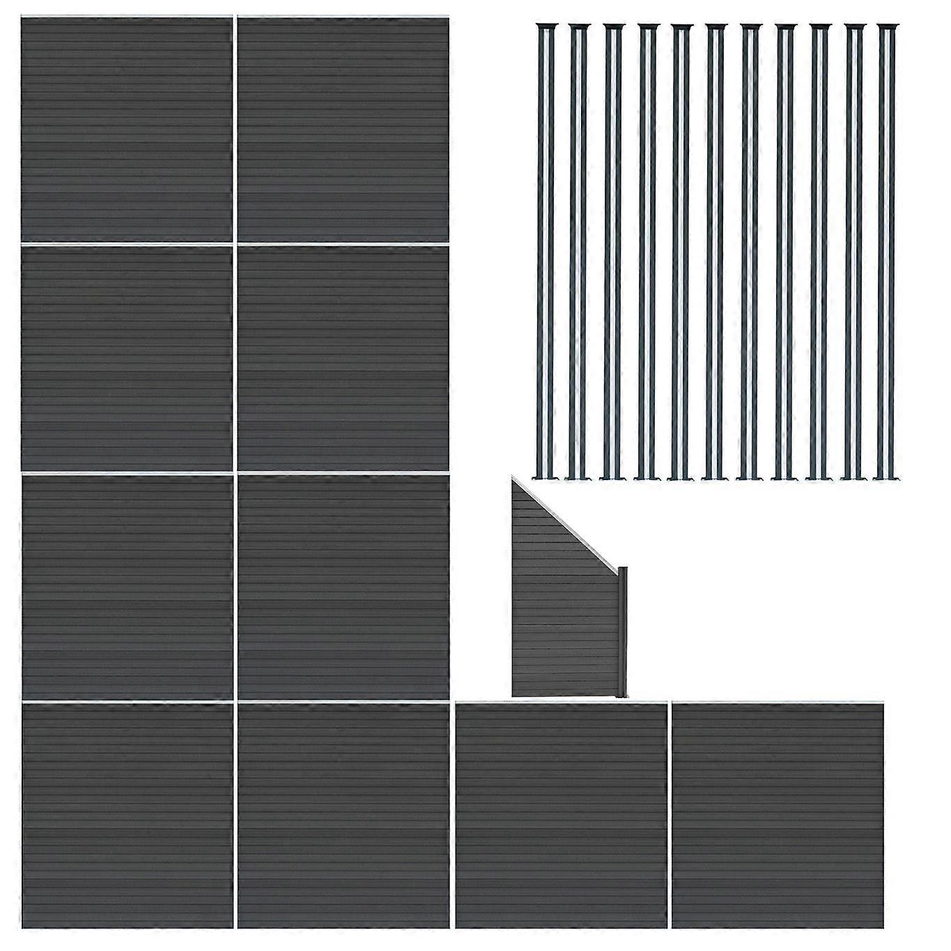 Composite Fence Panels x 10, Angled Piece & LED Posts x 11 - Grey