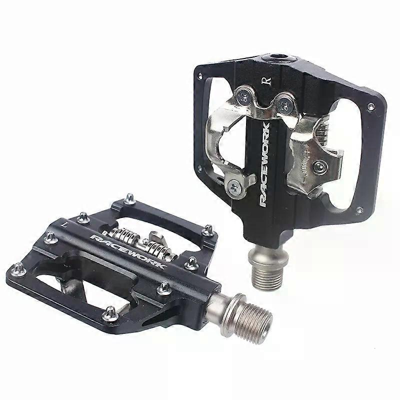 con RACEWORK MTB Clipless Pedals Self-locking CNC Aluminum Alloy DU Bearing SPD Double Flat Platform Mountain Bike Bicycle Pedal