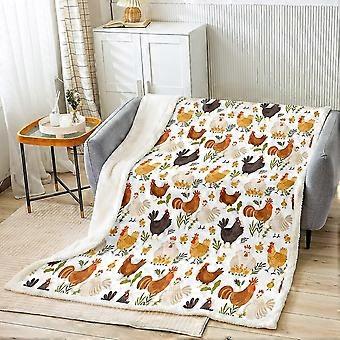 Cozy Farmhouse Chicken Plush Throw Blanket - Botanical Leaf Pattern, Beige Sherpa Fleece for Bed or Couch