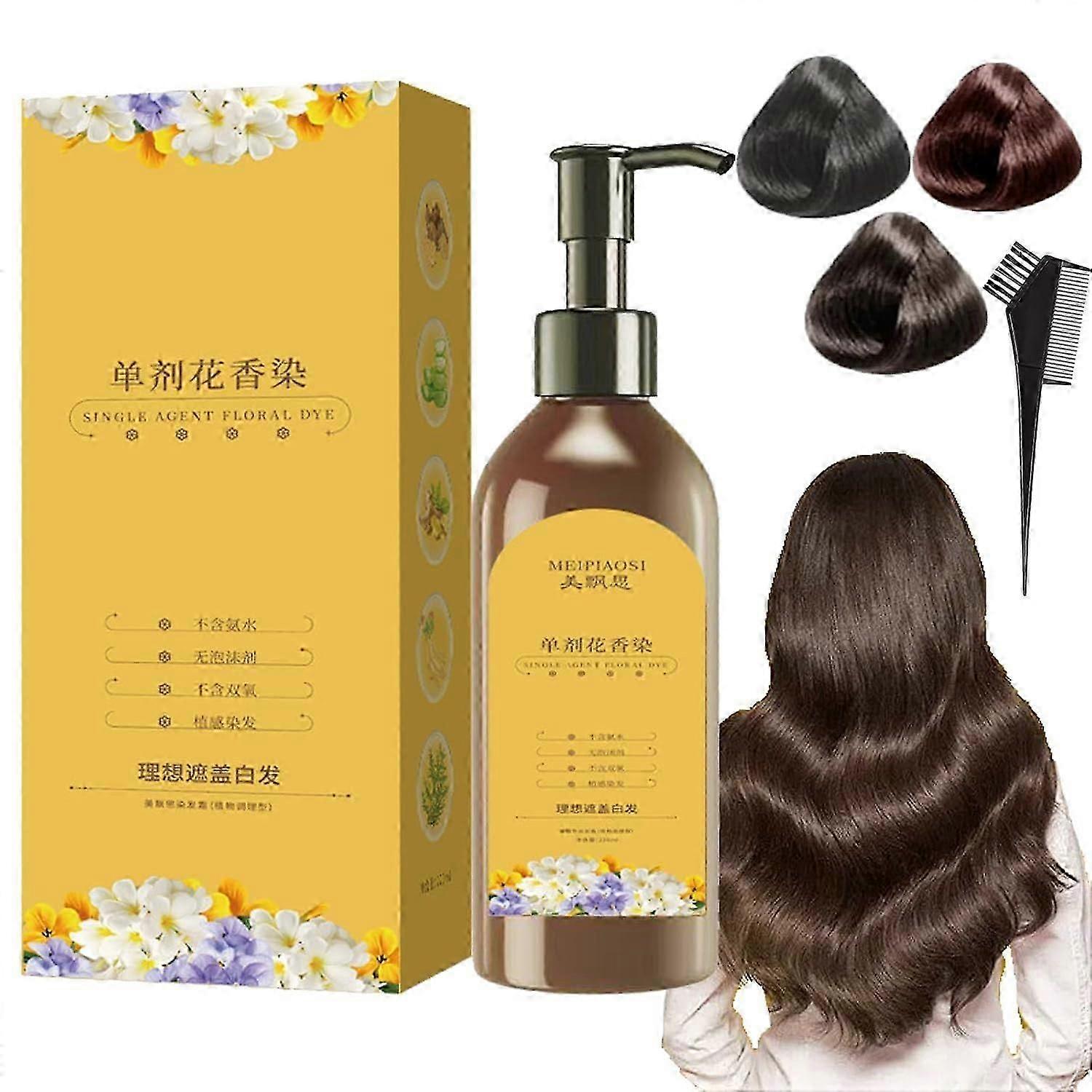 Long Lasting Natural Hair Dye Shampoo,Plant Bubble Hair Dye Shampoo,Plant Single Dose Floral Fragrance Dye,Instant Dye Shampoo for Women & Men