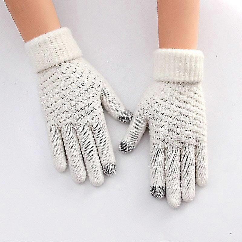 Female double-layer rabbit hair gloves winter korean version of solid color all fingers winter women gloves girls mittens R