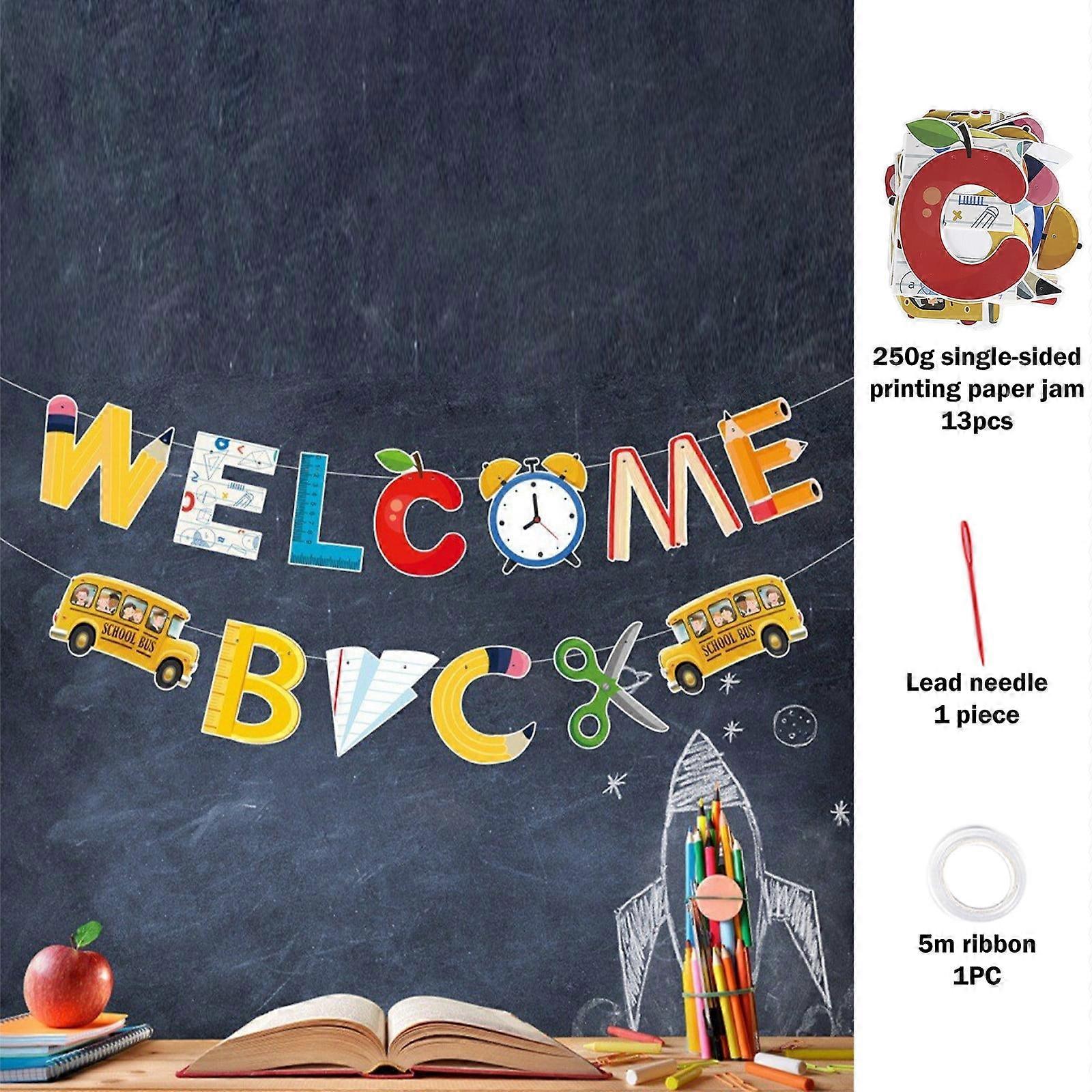 RFUGUG Welcome Back to School Decorations, 13PCS Cardboard, 5M Ribbon & Needle, Compatible with Kindergarten Pre-school Primary High