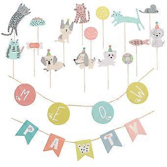 Birthday Decorations For Dogs And Cats With Cardboard Birthday Cake Toppers And Banners 2 Sets