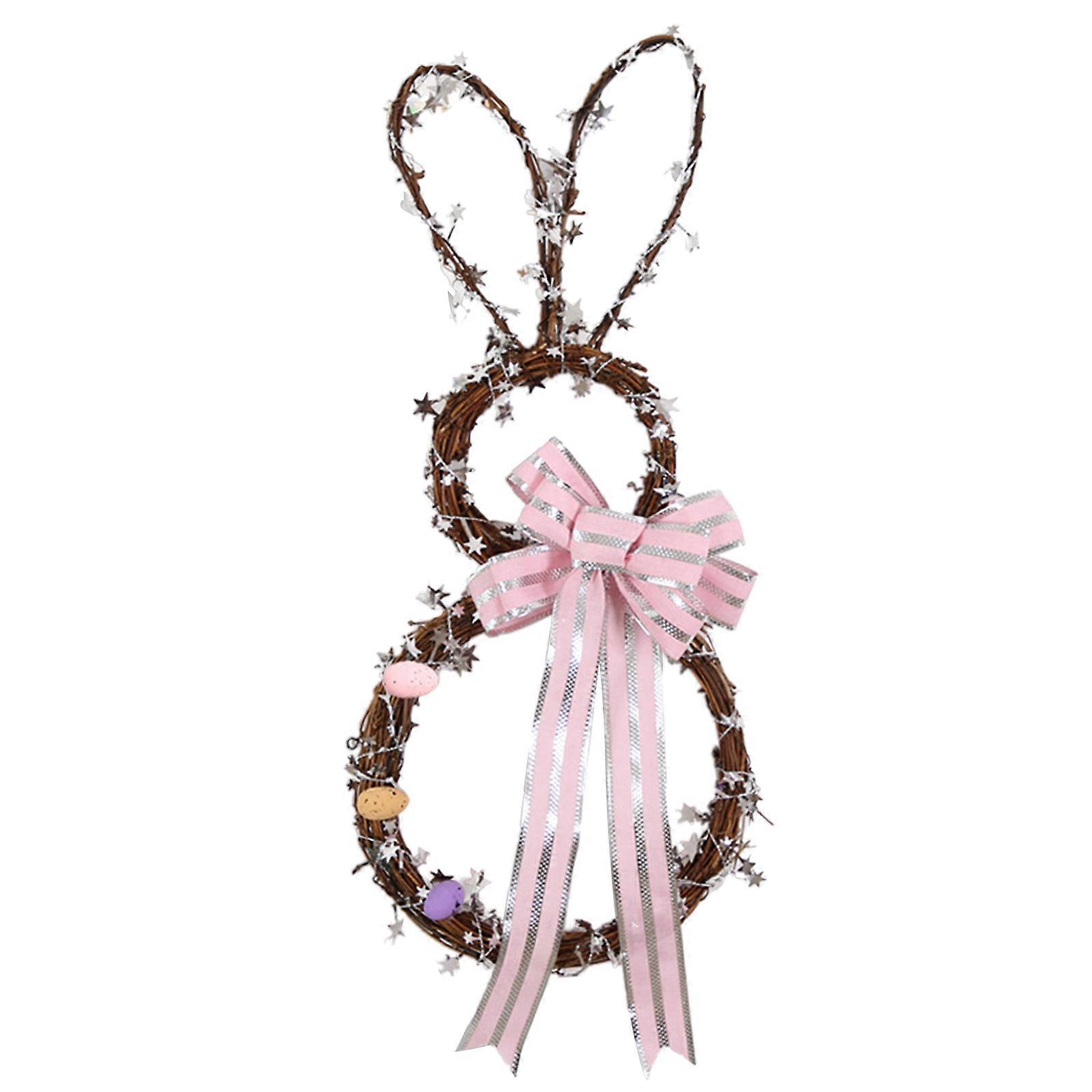 Easter Decorations LED Light Bunny Wreath Handmade Rattan Garland Hanging Decor