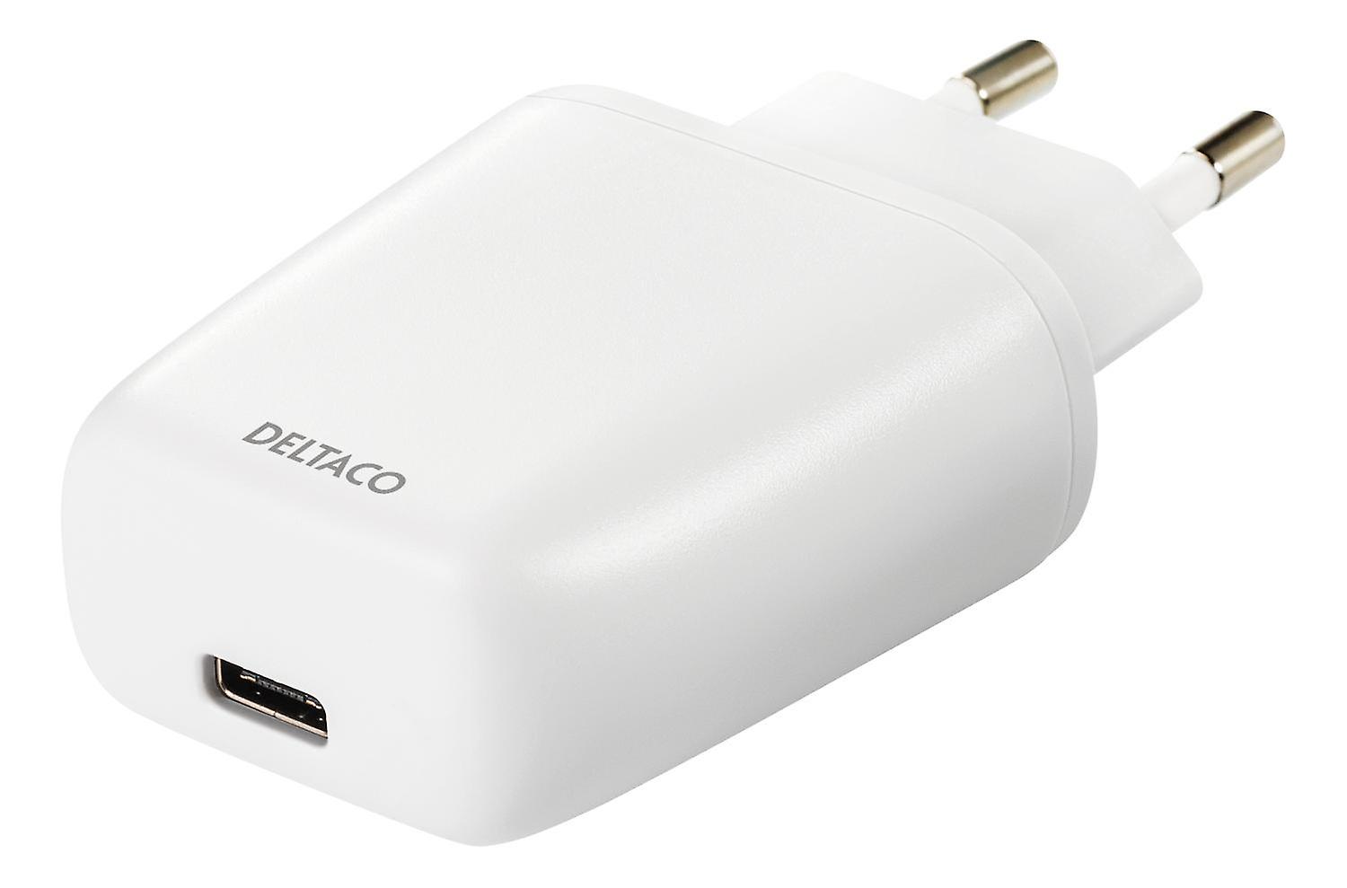 DELTACO Väggladdare 240V till 5V USB, 3A/15W, 1xUSB-C vit