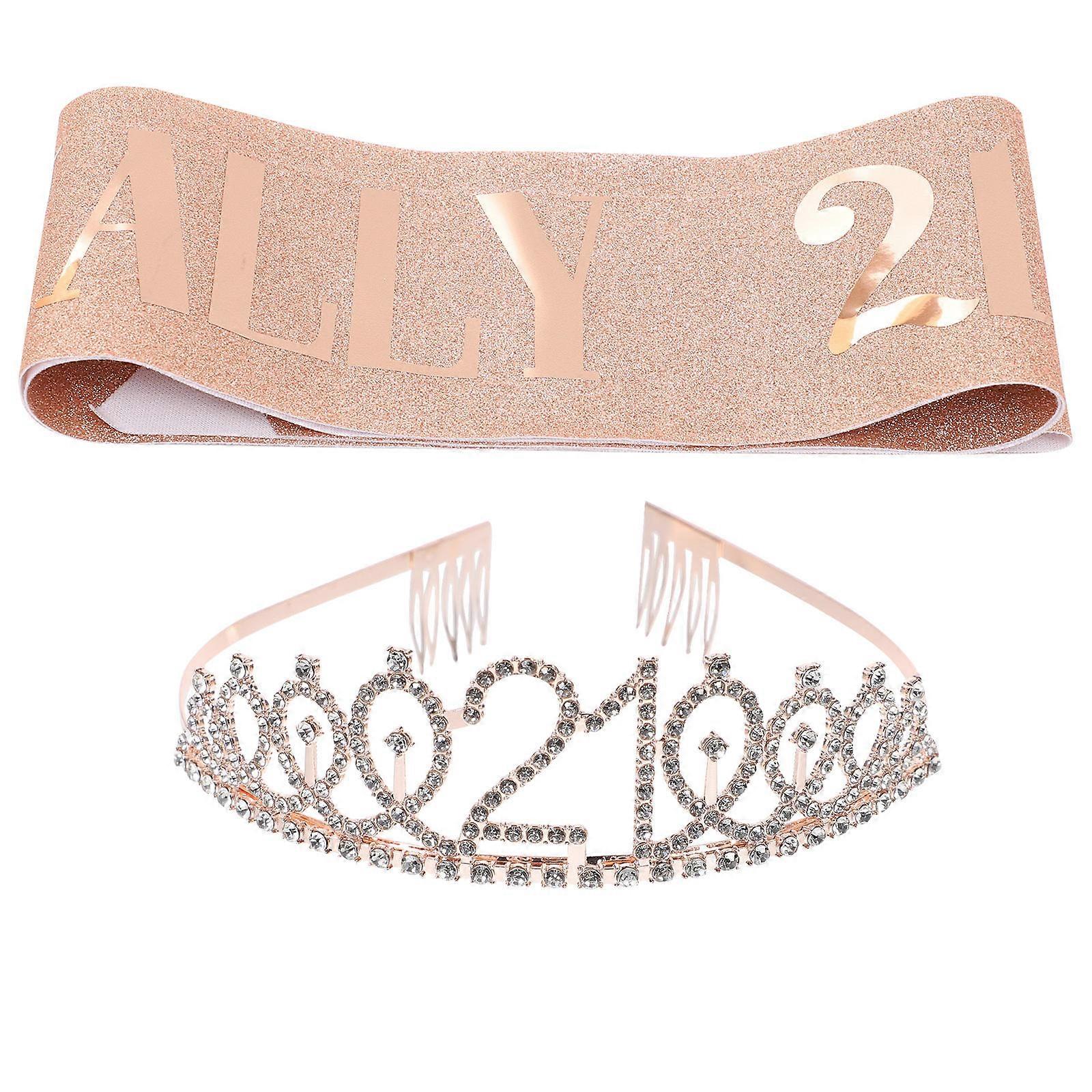 Girls Birthday Sash Tiaras 2 Sets Rose Gold Crown-shaped Decoration for Young Adults and Teenagers