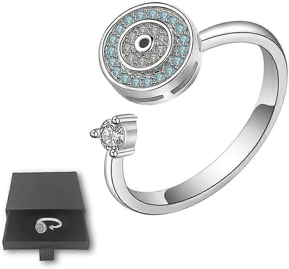 Disc Amulet Devil's Eye Adjustable Open Fidget Spinner Rings(White Gold)