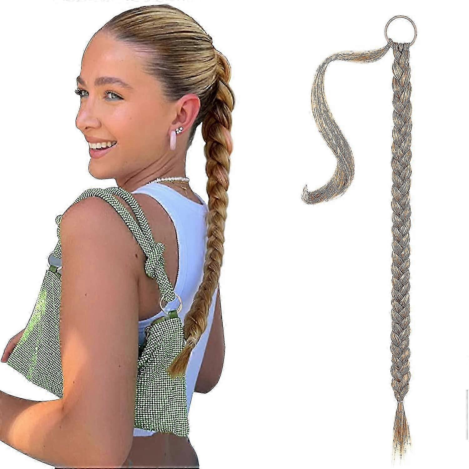 DIY Braided Ponytail Extension with Hair Tie - 80cm Straight Wrap Braid Hairpiece in Natural Soft Synthetic Hair